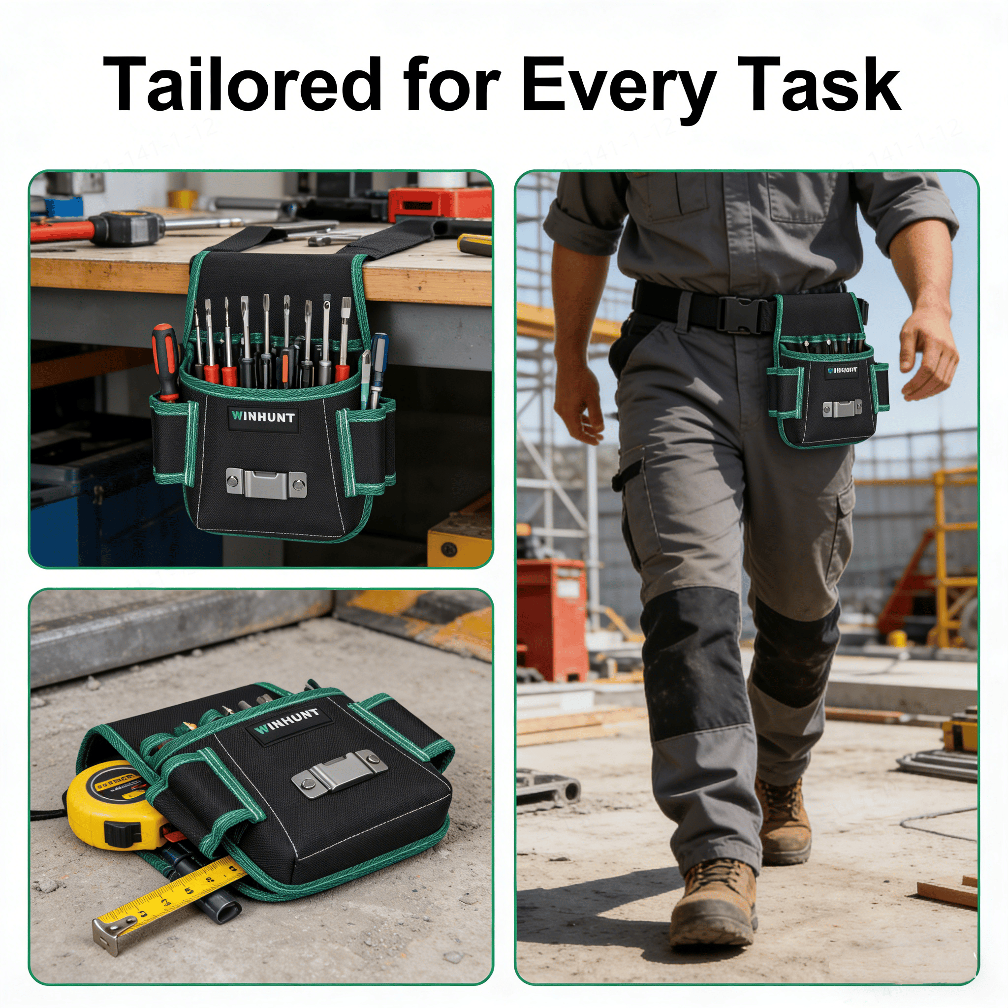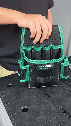 - Quick-release mechanism: Detach the pouch from the belt in seconds, or hang it on scaffolding/workbenches